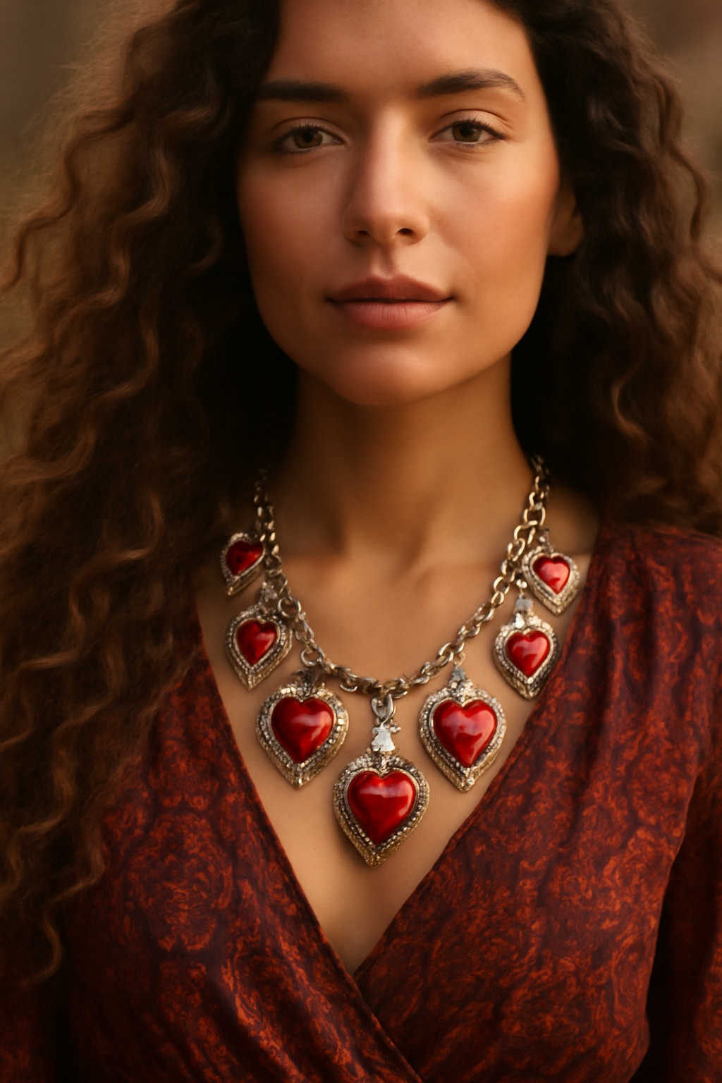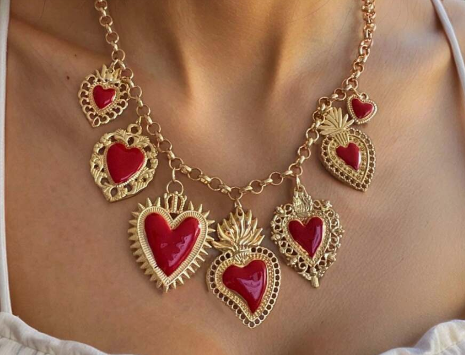 Colar dourado com corações esmaltados. Glamour instantâneo com conforto.52cm de perímetro
