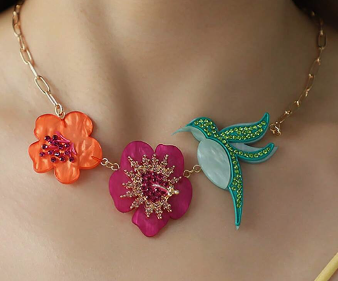 Colar de Flores e pássaros