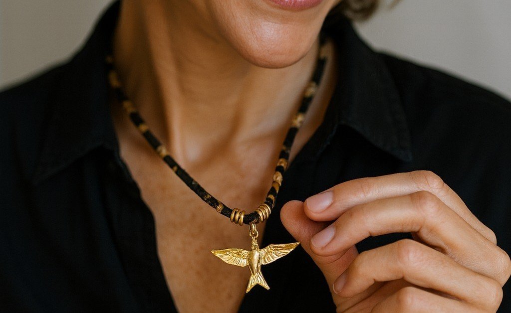Colar Andorinha em fio estampado, inspirado na natureza