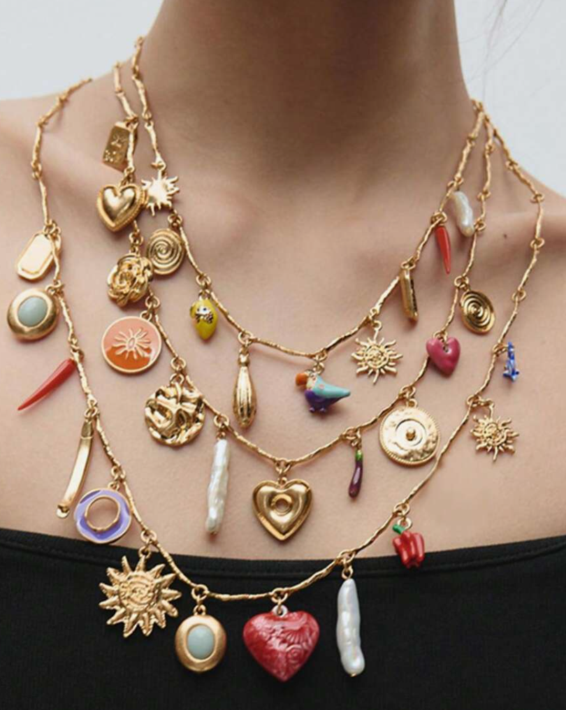 Colar de 3 voltas com corações, estrelas, pérolas