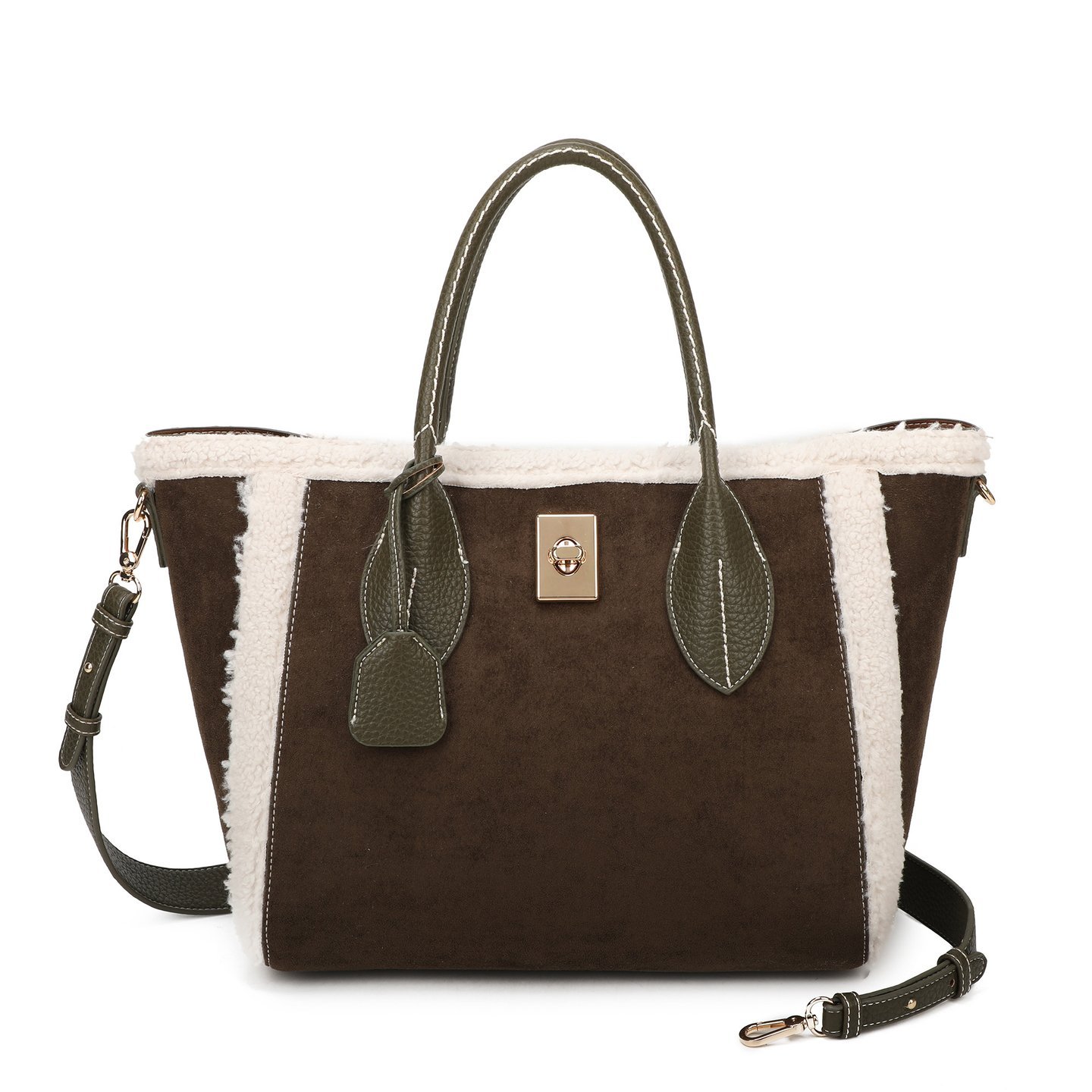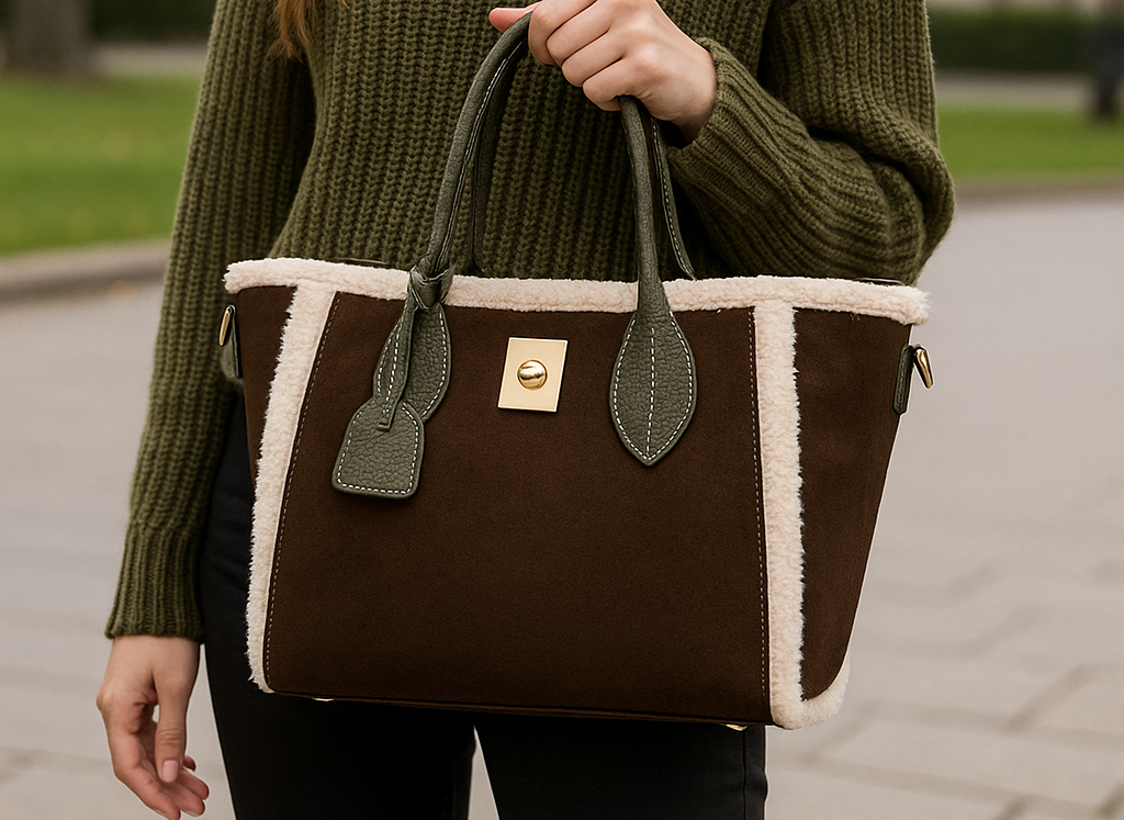Mala shopper em verde escuro com mistura de pelinho e camurça. Texturas ricas que dão um ar aconchegante e sofisticado, ideal para outono/inverno e looks mais quentes.Medida (centímetros)45 x 15 x 30 (CxLxA)