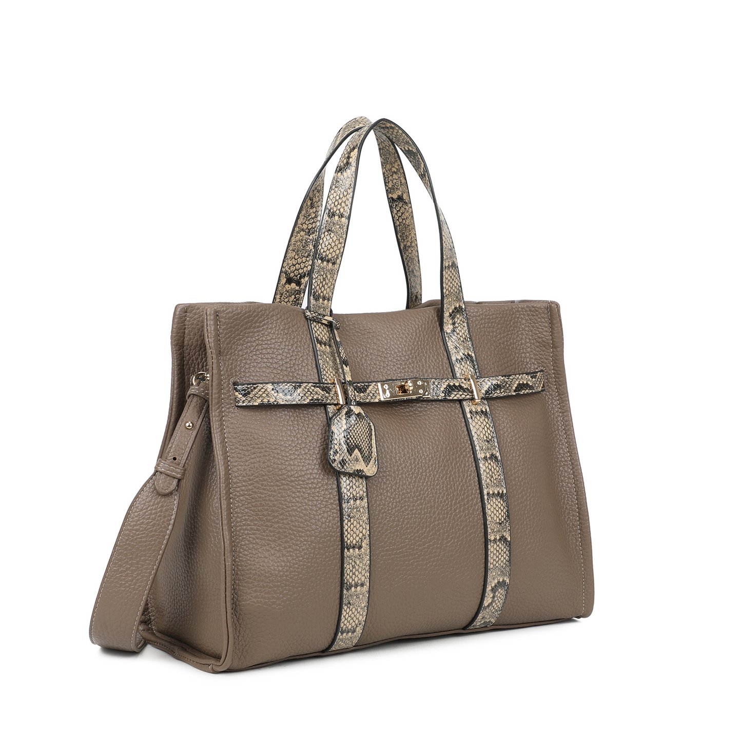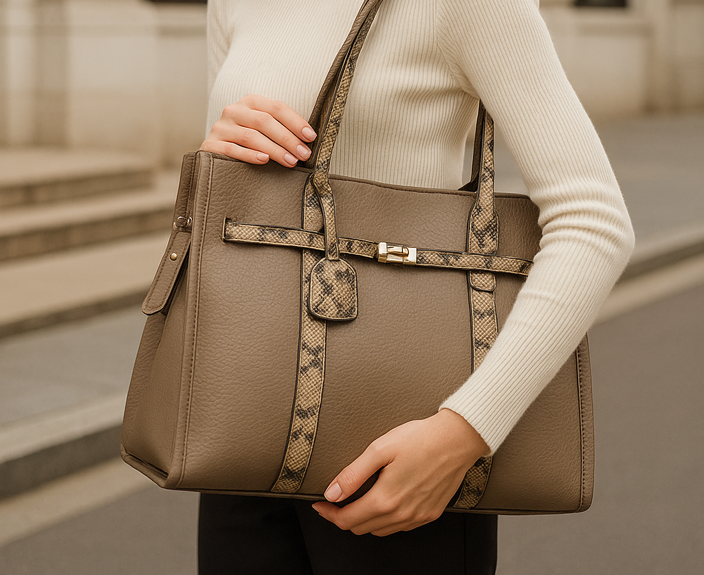 Mala shopper com detalhes em animal print em tons cinzento-acastanhado. Design estruturado, elegante e prático, perfeita para o dia-a-dia ou para looks de trabalho mais sofisticados.Medida (centímetros)45 x 13 x 37 (CxLxA)