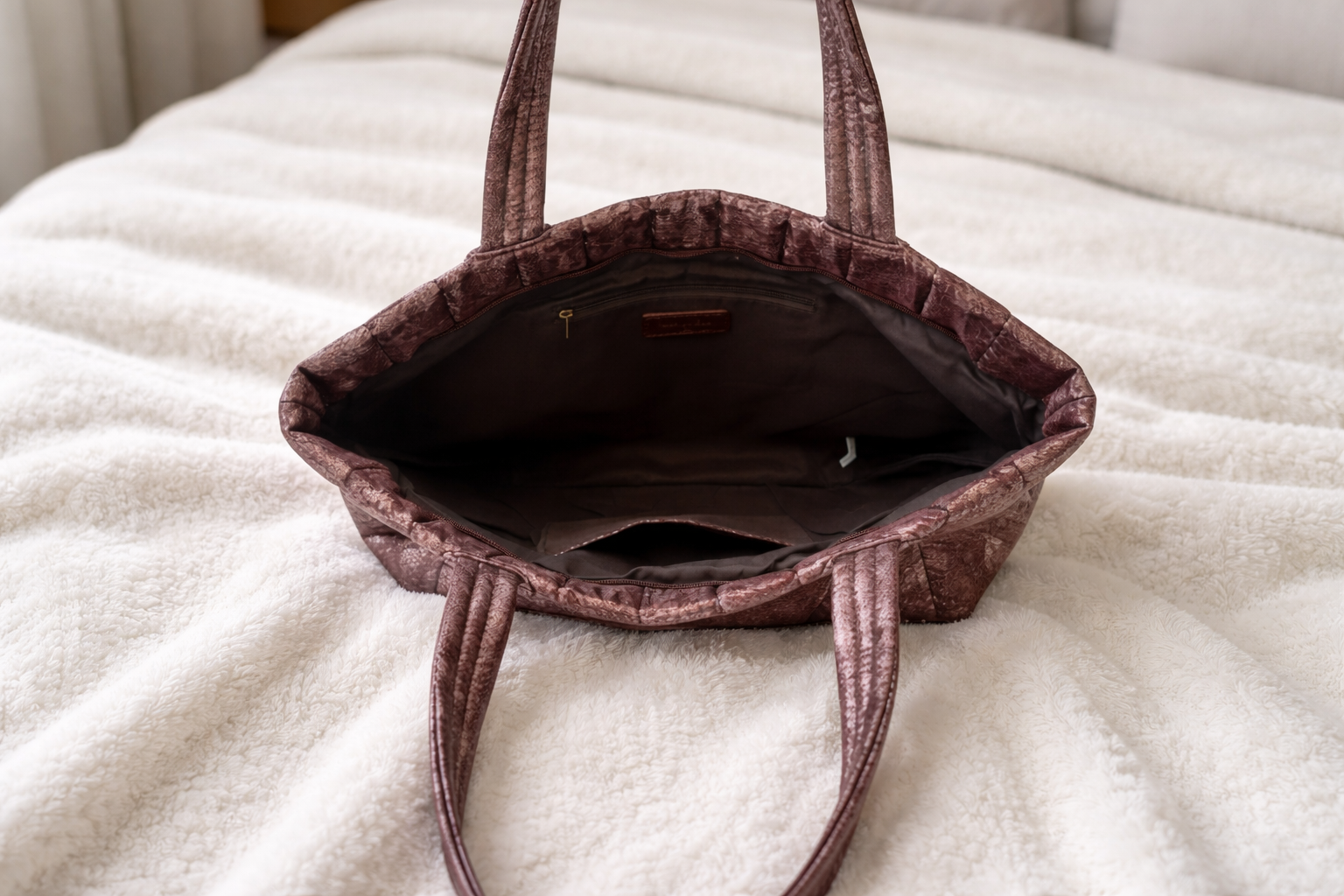 Mala shopper Savanna em material tipo quipo na cor bordeaux. Leve, prática e com muito estilo, perfeita para o dia-a-dia, aulas ou trabalho, com espaço para documentos e pequenos objetos.Medida (centímetros)51 x 18 x 36 (CxLxA)