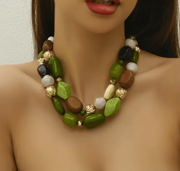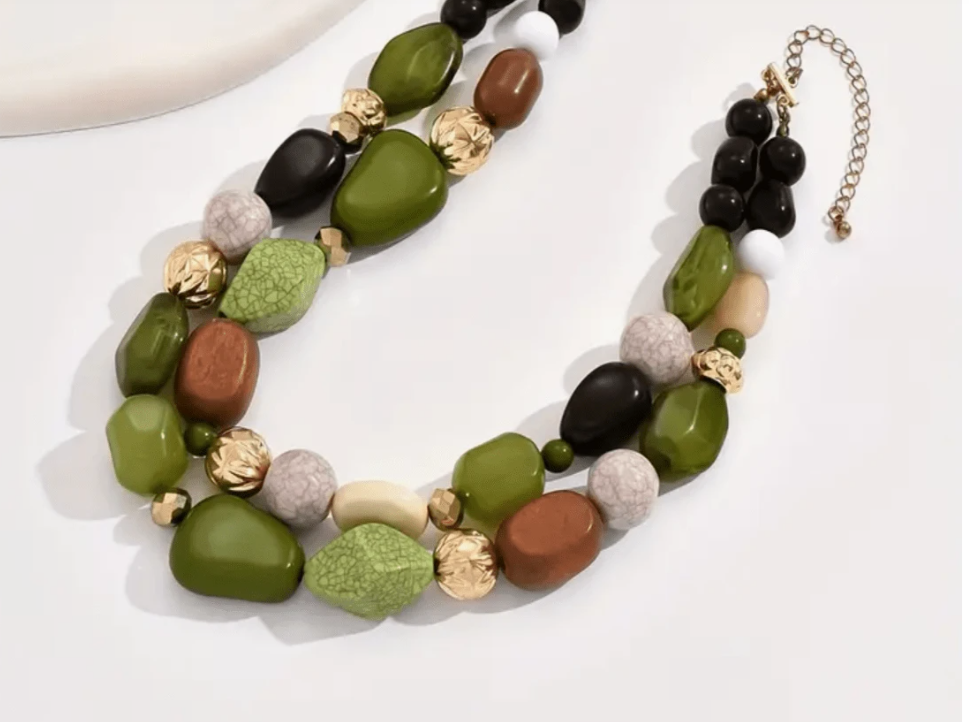 Colar artesanal com contas coloridas e pendente central. Destaque boho chic.50cm de perímetro